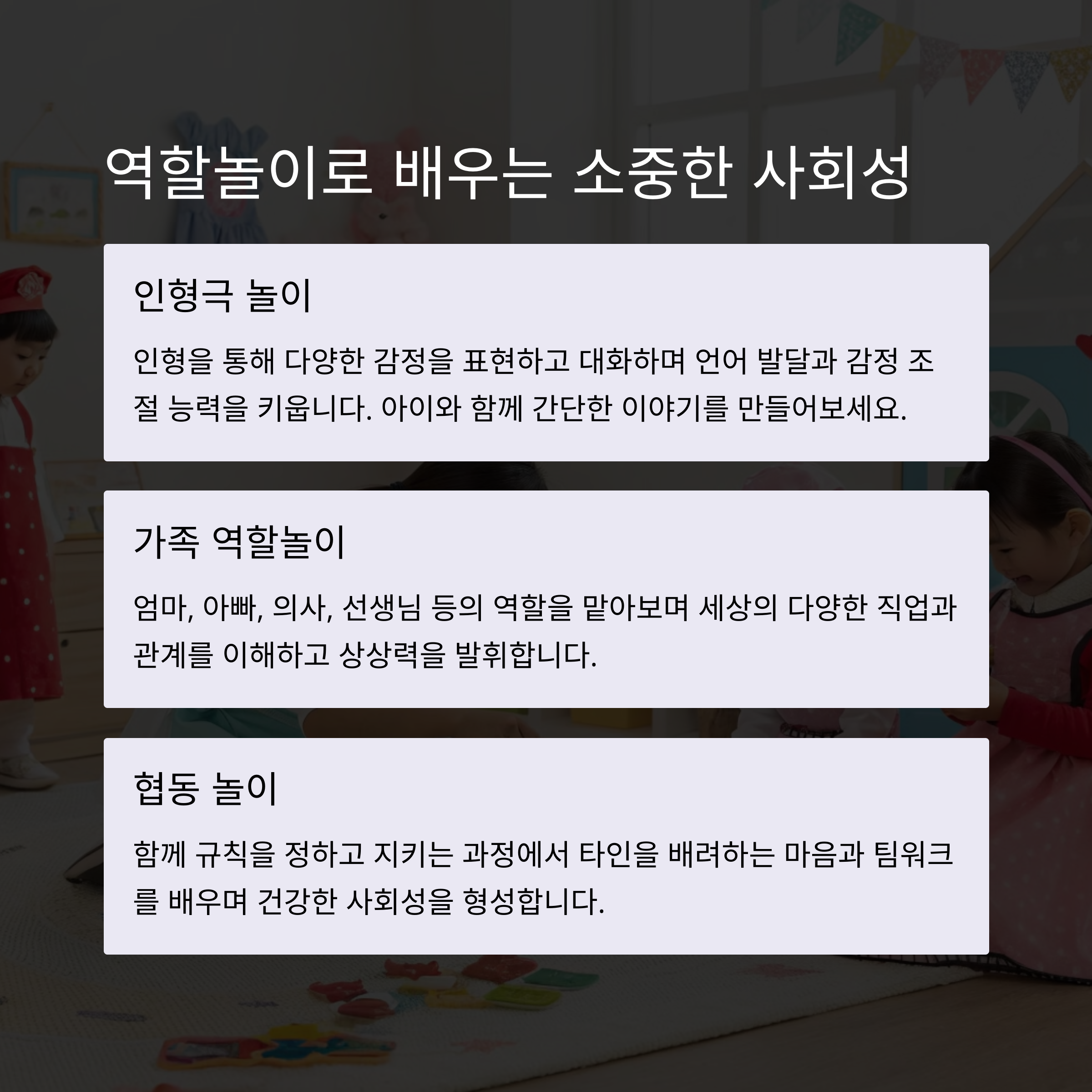 - “역할놀이를 하니 어휘가 폭발적으로 늘었어요.”