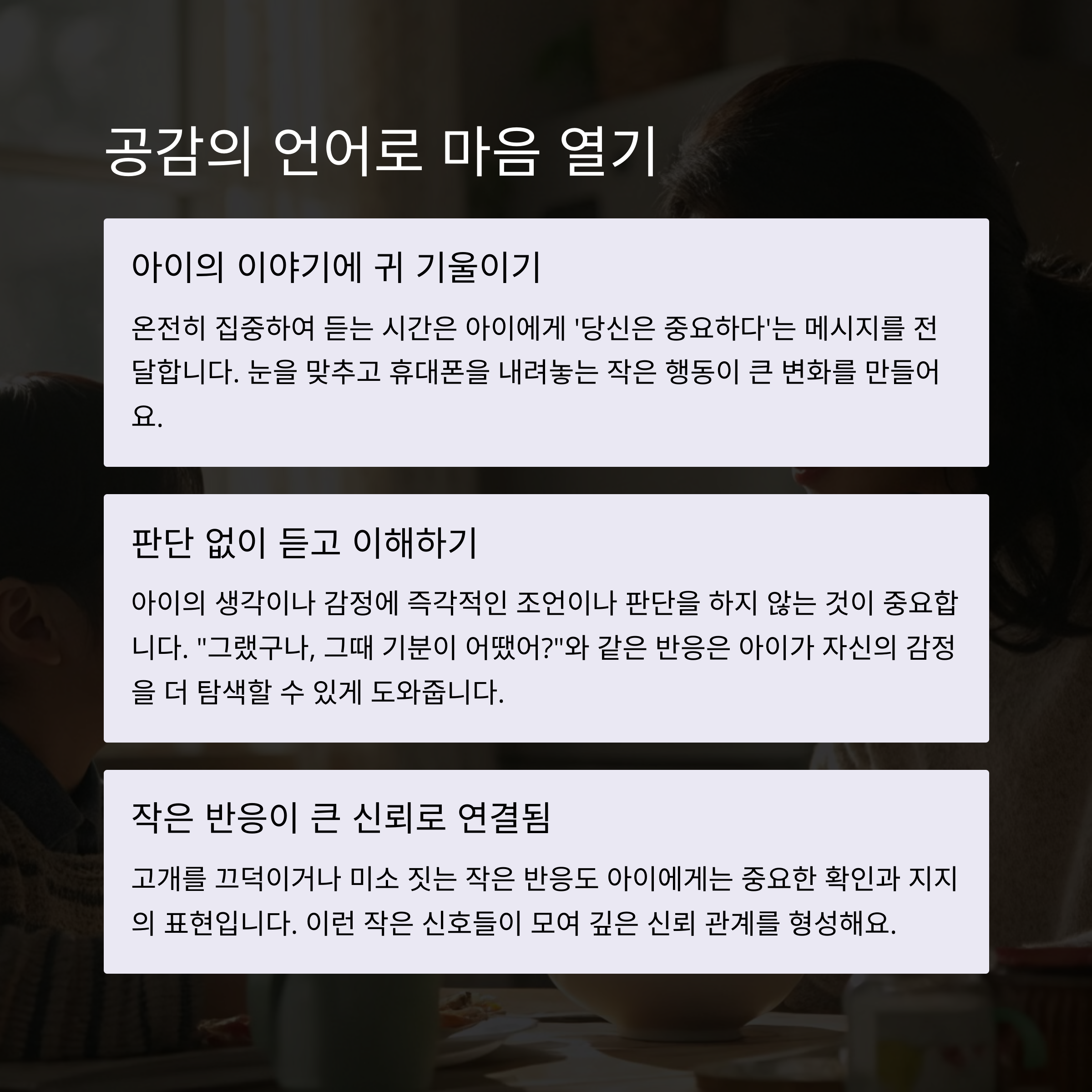• “대화 한마디로 아이가 먼저 말을 걸기 시작했어요.”