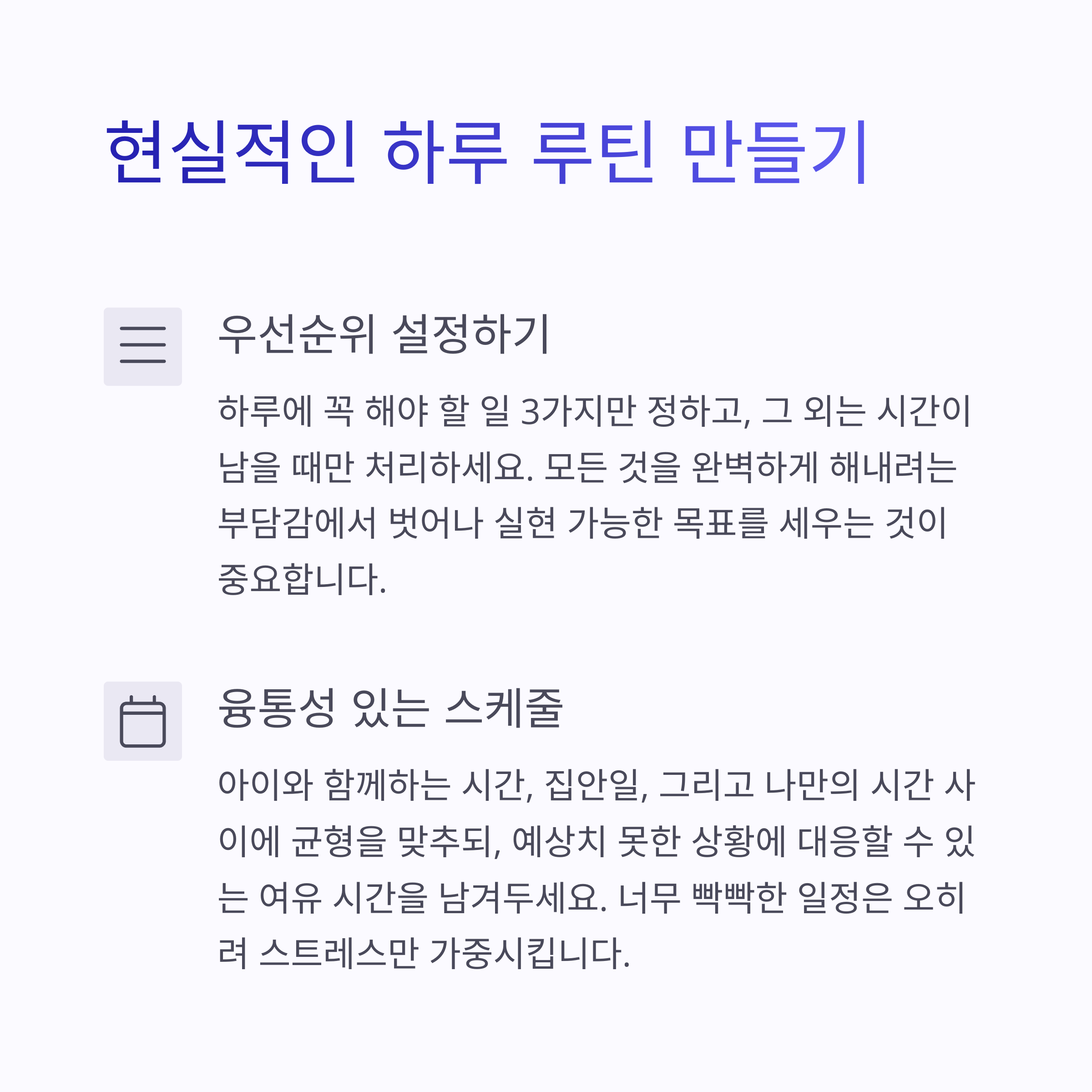 시간을 ‘관리’하려고 하기보다, ‘조율’한다고 생각하면 훨씬 덜 부담돼요.