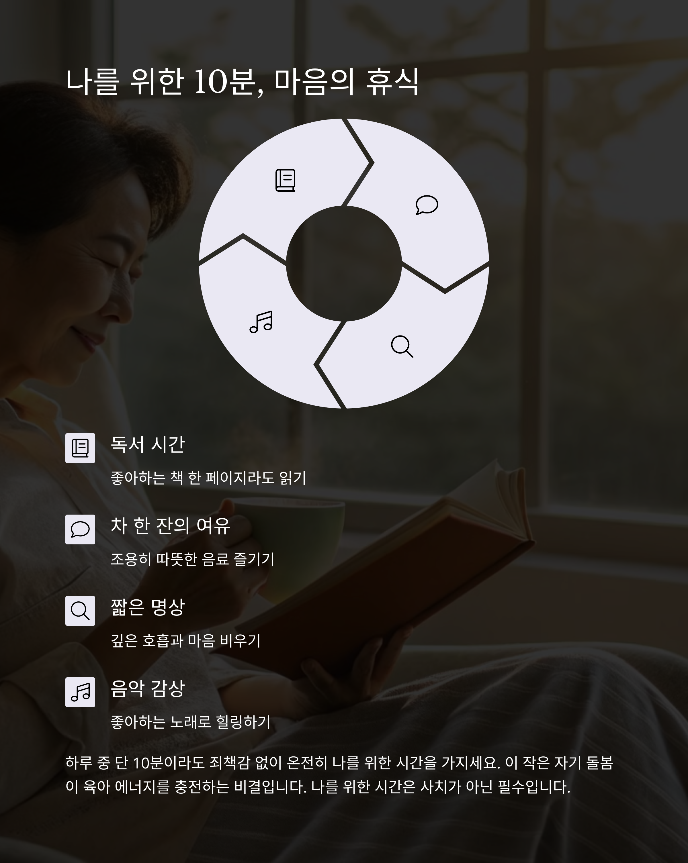 - 짧은 나만의 시간 확보: 낮잠 20분은 ‘쉼’ 시간으로 꼭 남겨두기