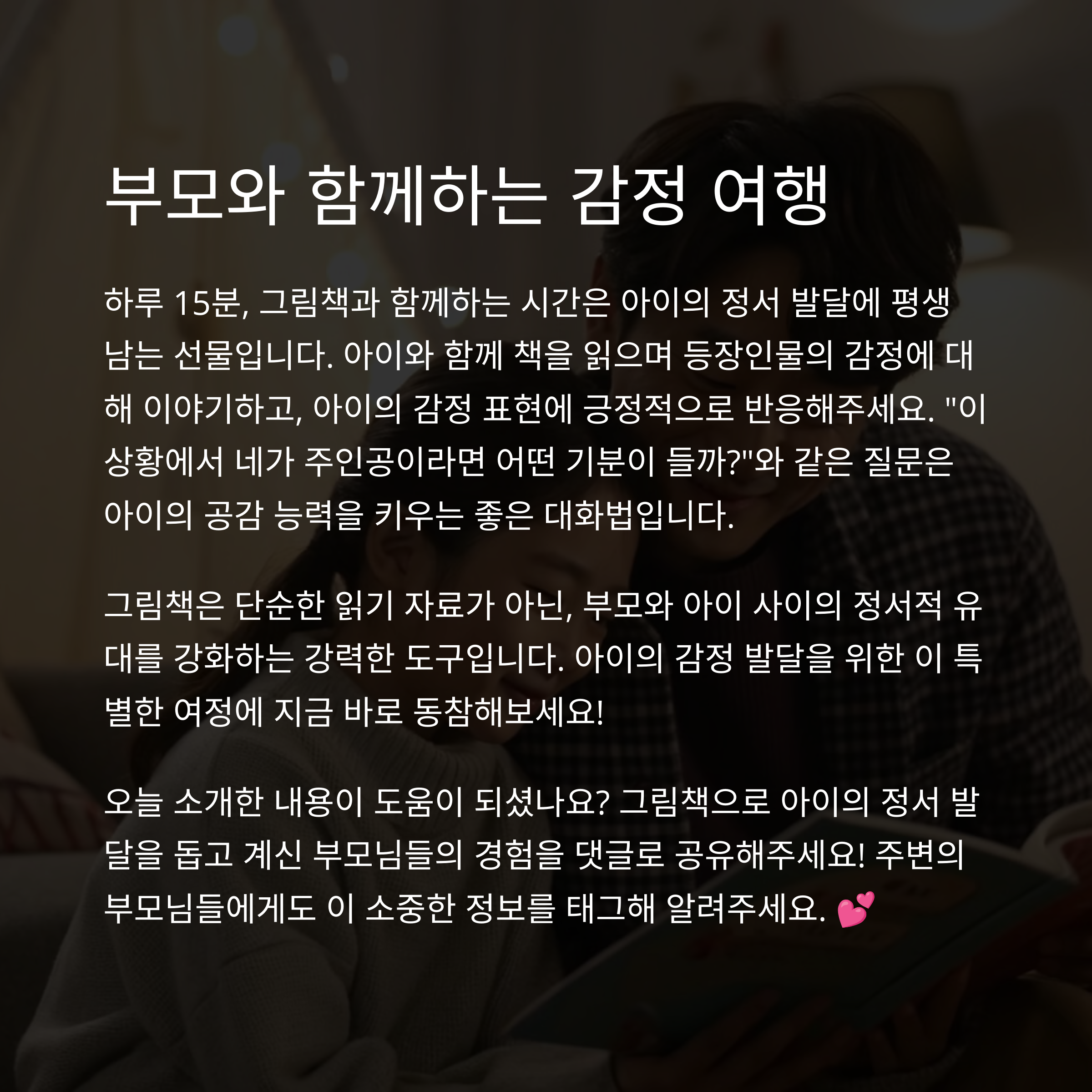 - 그림책은 감정 표현과 정서 발달의 가장 좋은 도구예요