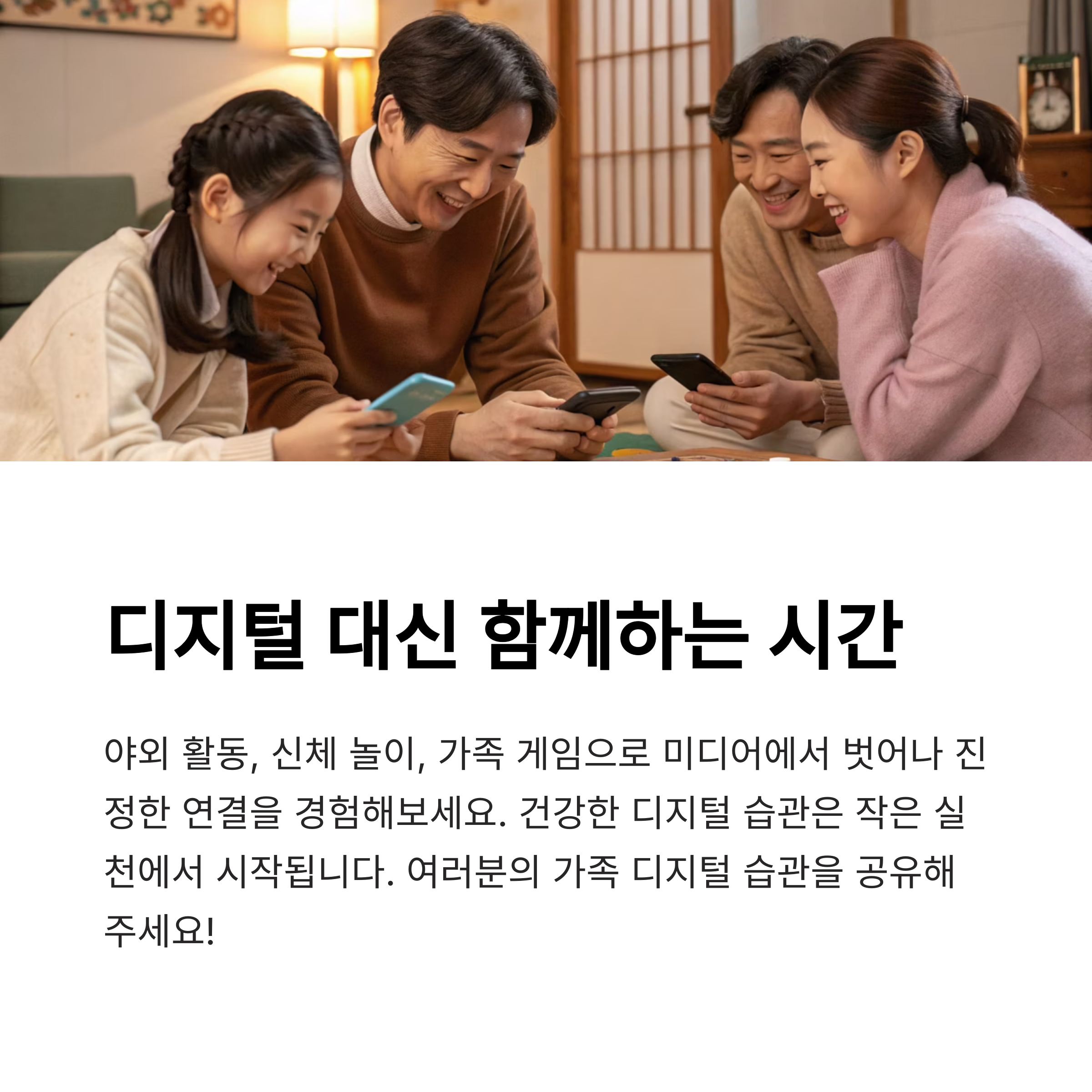 📌 건강한 디지털 습관은 기술 활용과 웰빙의 균형을 유지하며 가족 간의 유대감을 강화합니다.