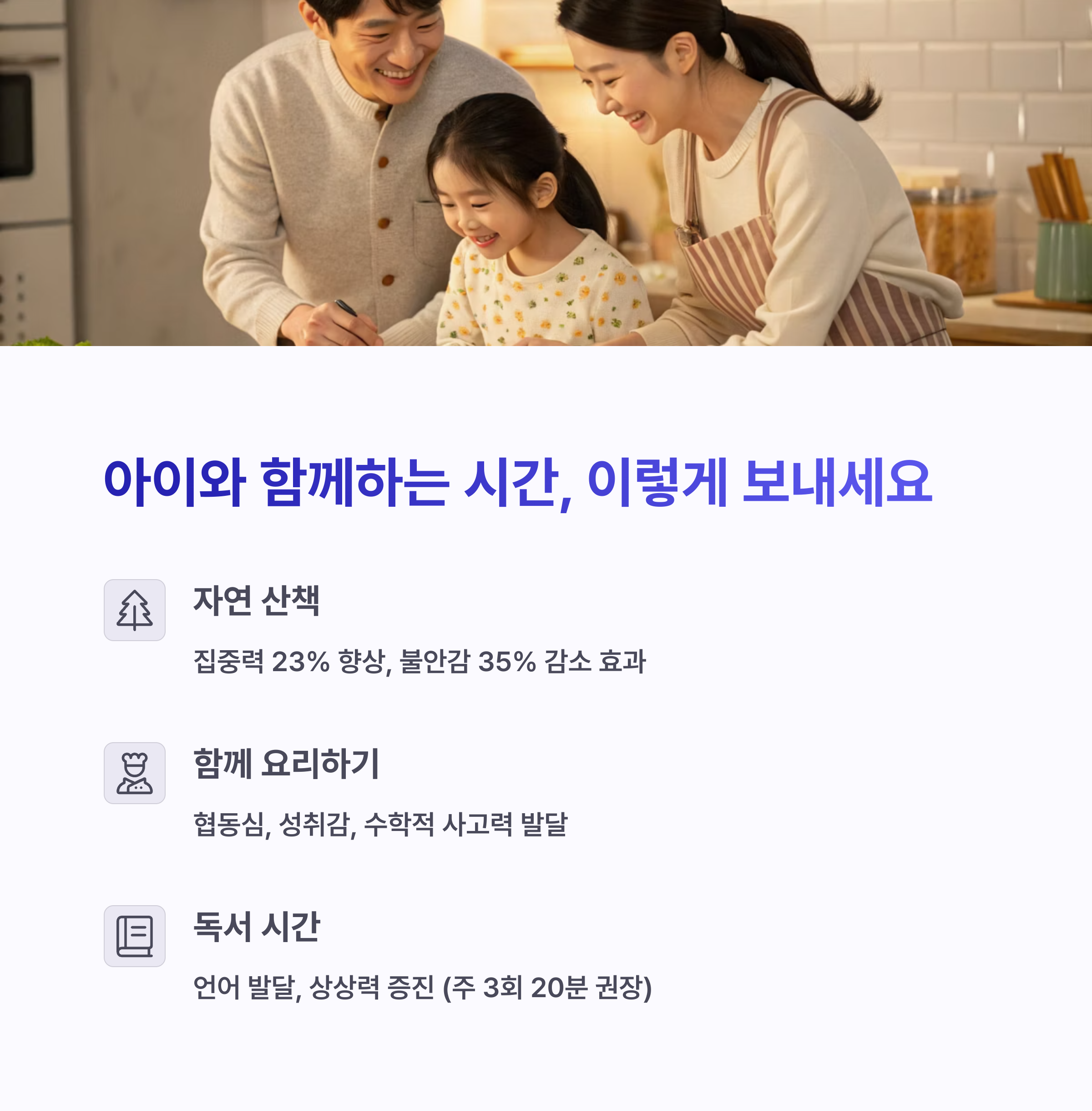 • 📌 안정감: 부모와 함께하는 시간은 자녀에게 심리적 안정감을 제공합니다.