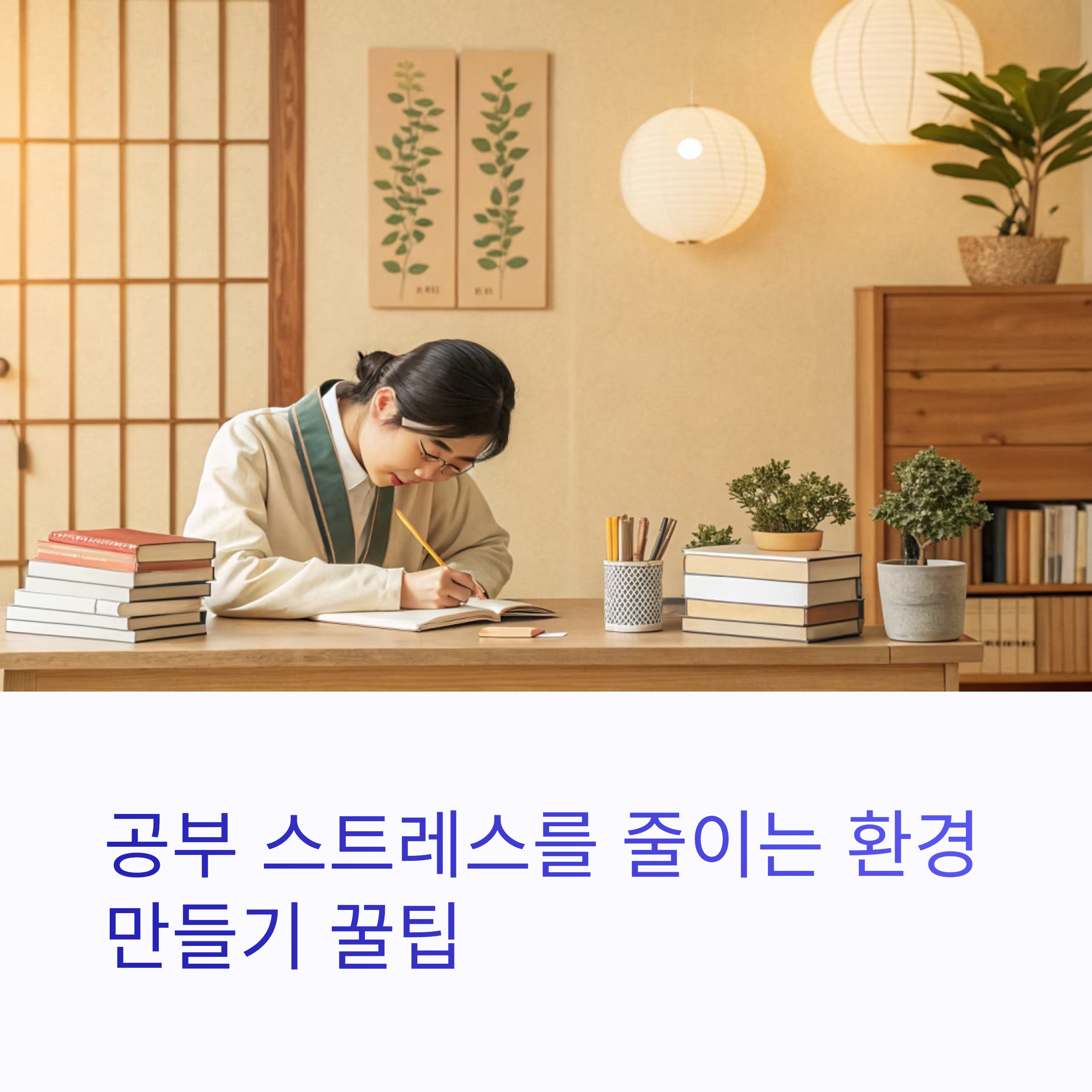 안녕하세요! 공부하며 스트레스 받는 순간이 누구에게나 찾아오죠. 하지만 환경을 조금만 바꾼다면 스트레스는 눈에 띄게 줄어들 수 있습니다. 오늘은 마음 편히 집중하며 공부할 수 있는 完벽한 환경을 만드는 꿀팁을 소개합니다.