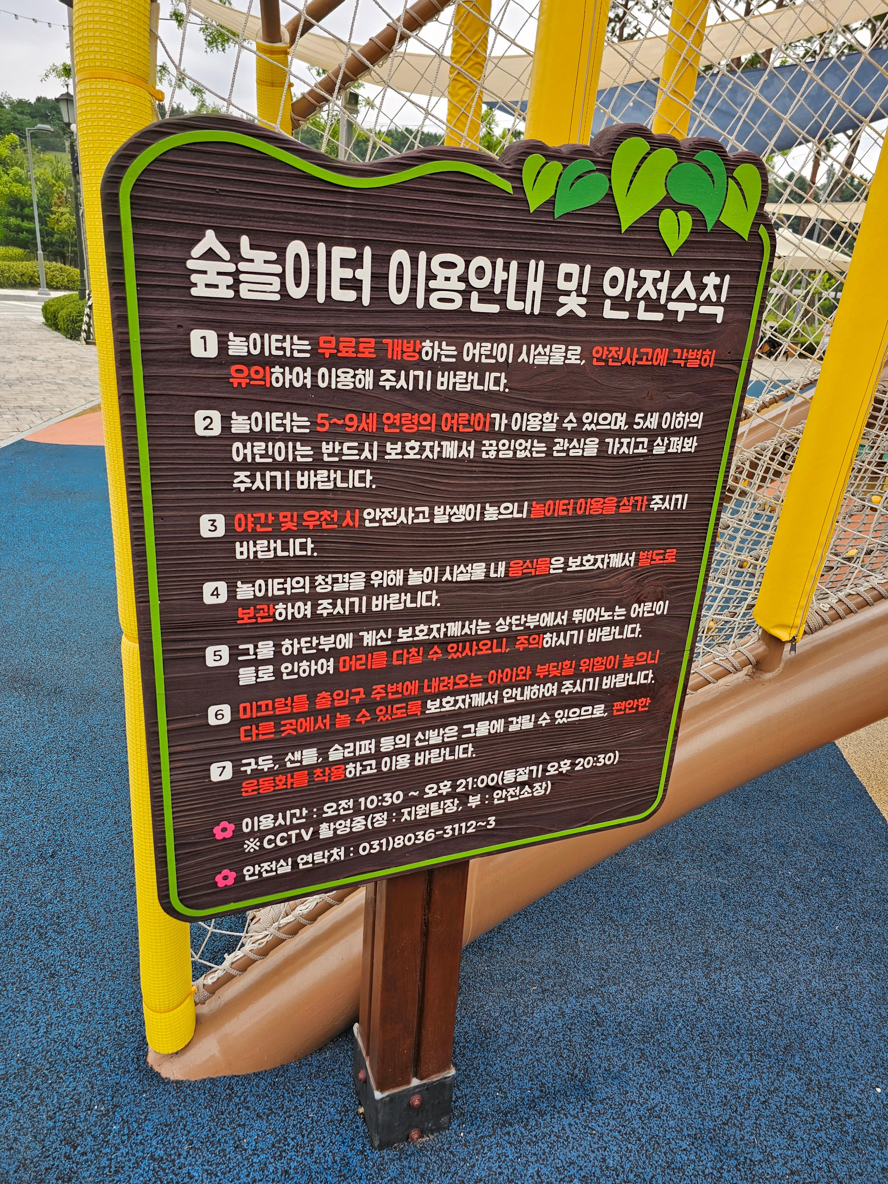 숲놀이터는 야외 시설이라 우천 시에는 운영이 제한될 수 있어요. 방문 전 날씨를 확인하고 가는 것이 좋아요!