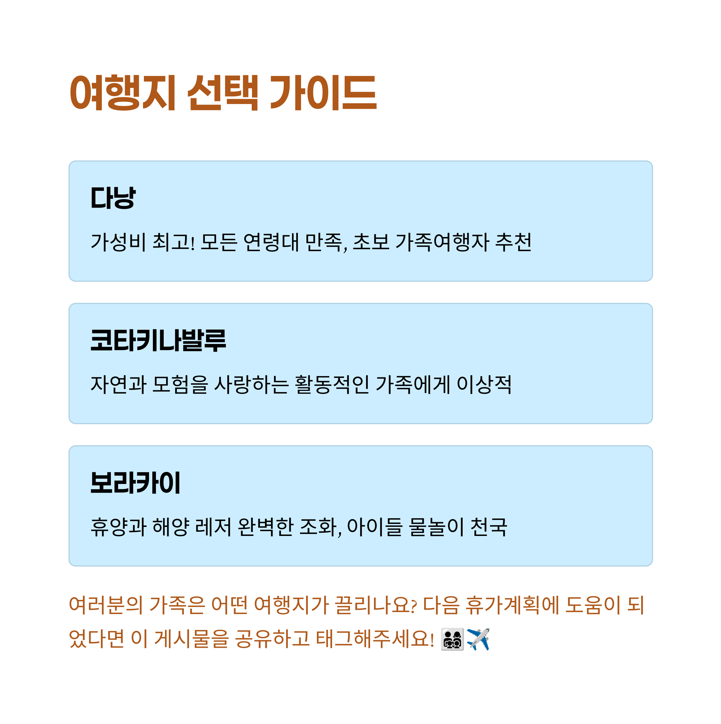 다낭은 한국 가족들에게 꾸준히 사랑받는 여행지입니다. 짧은 비행시간, 가성비 좋은 숙소, 그리고 맛있는 음식들로 꽉 찬 여행을 보장하죠. 마지막 날, 아이가 '또 오자'고 외치던 순간은 잊을 수 없어요!