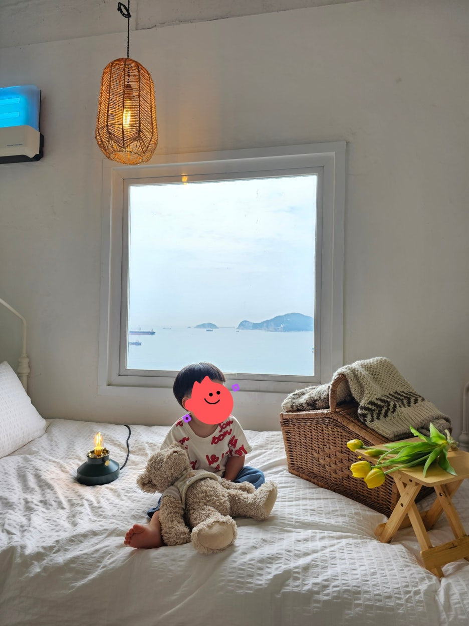 • 내부: 통유리창을 통해 푸른 바다를 감상할 수 있고, 따뜻한 우드톤 가구와 감성적인 조명이 분위기를 더욱 살려줘요.