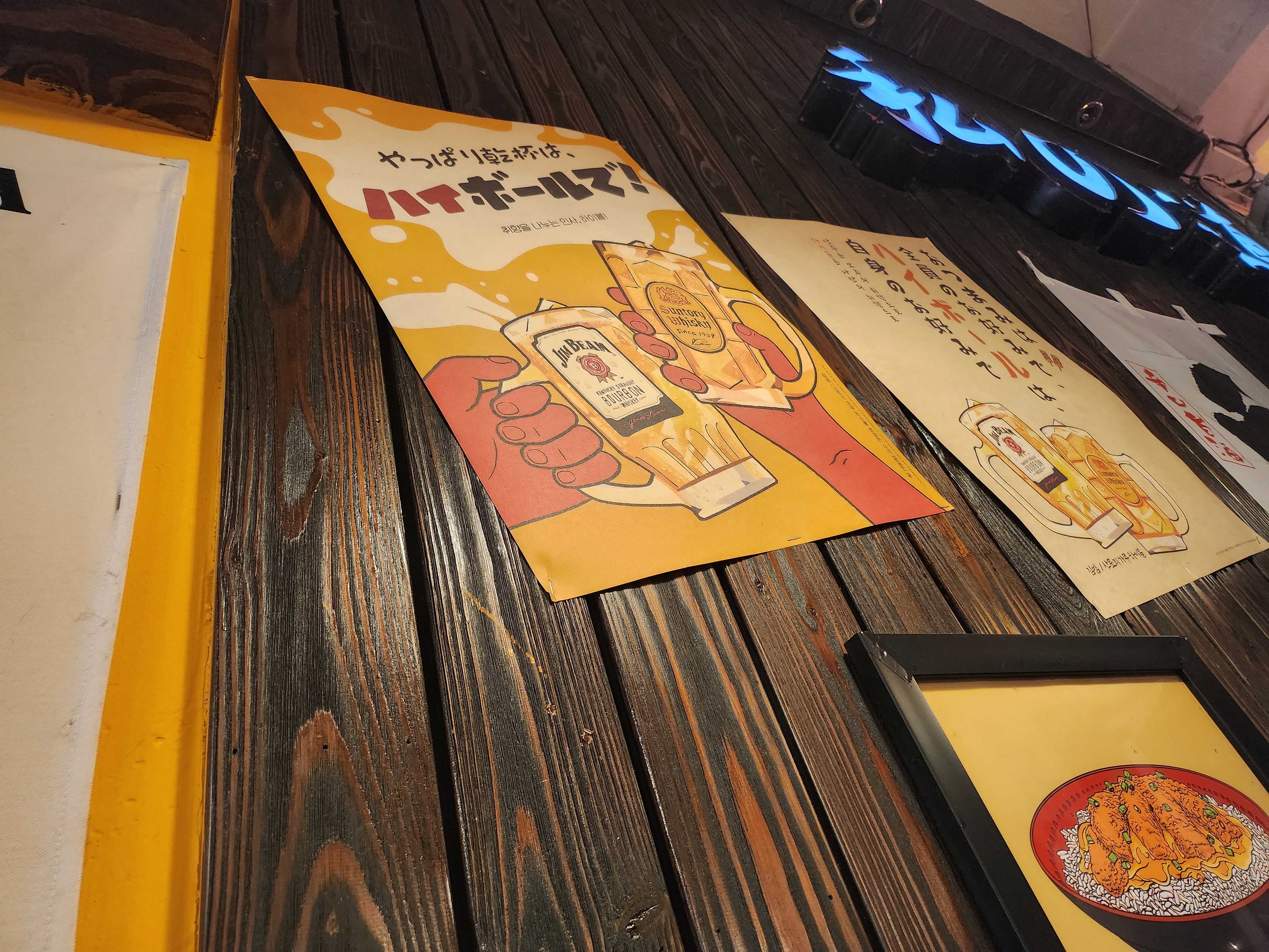 가게 문을 열자마자 눈길을 사로잡는 건 바로 가득한 도라에몽 피규어와 사케 병들이었어요. 노란 벽과 원목 테이블, 일본식 포스터와 천 장식까지 분위기가 정말 일본 이자카야 그 자체! 특히 각 테이블마다 프라이빗한 느낌이 드는 공간 구성이 매력적이라, 데이트는 물론 가족 식사에도 제격이에요.