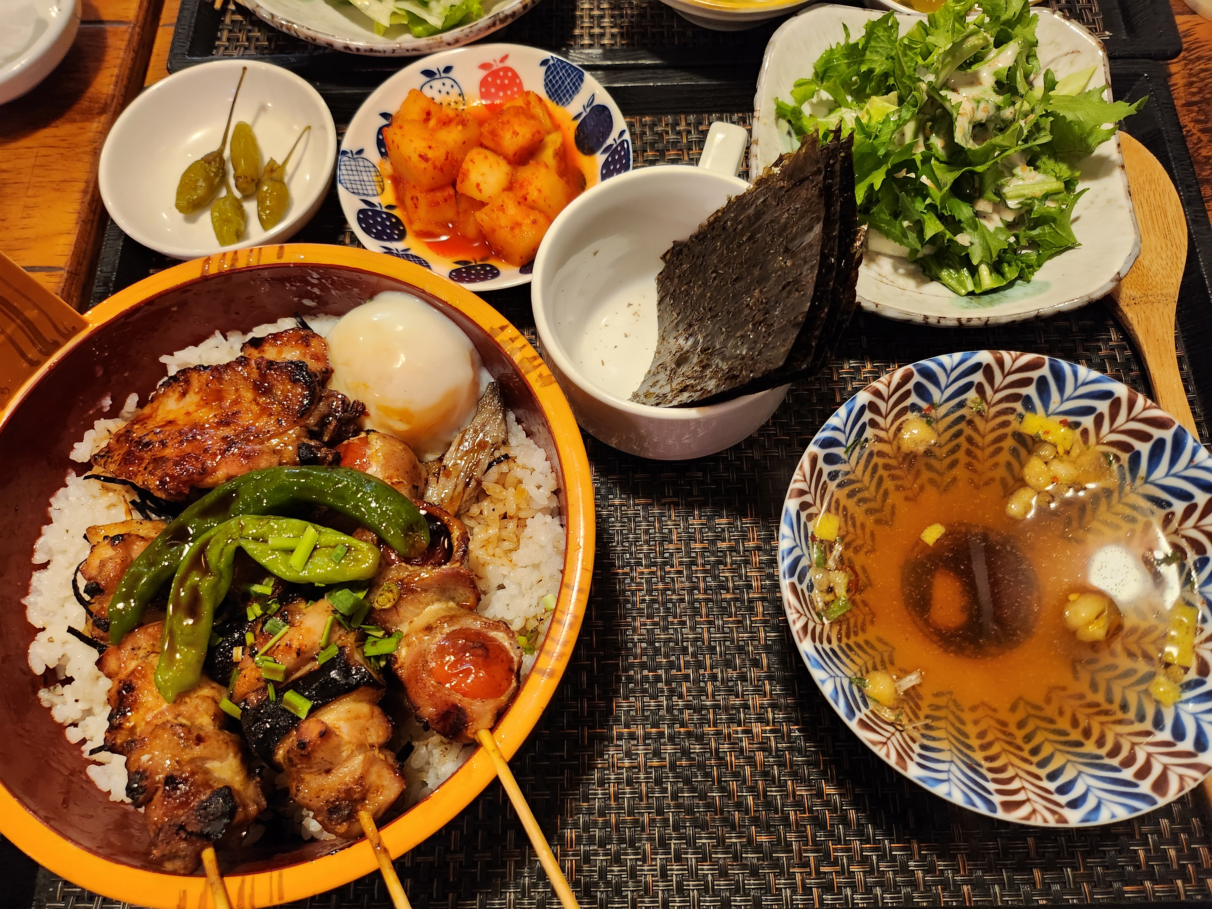야끼토리 정찬과 사케 정찬이 가장 인기 많고, 부타차슈 정찬도 가성비 좋기로 유명해요.