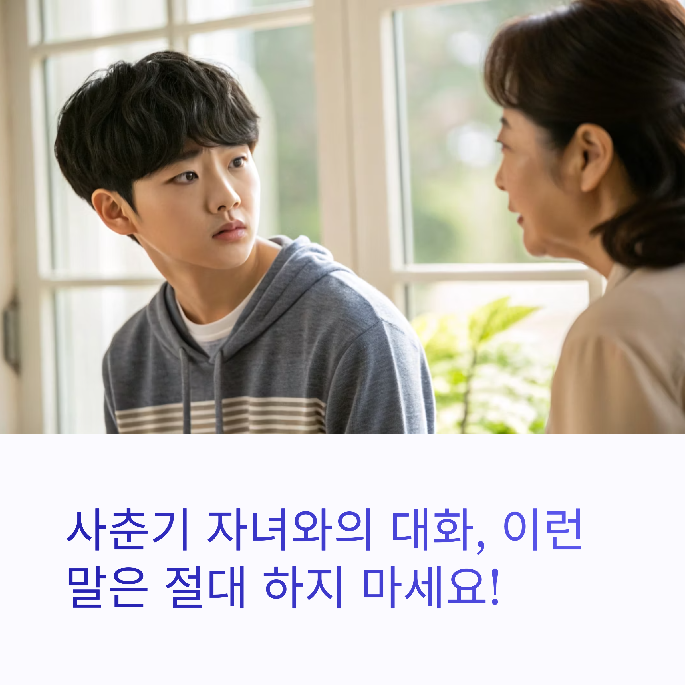 사춘기를 겪는 자녀와의 대화는 많은 부모님들에게 큰 도전 과제가 되곤 합니다. 😥 부모님은 좋은 의도로 얘기했지만, 아이 입장에서는 오히려 마음이 닫히거나 거리감이 생길 수도 있어요. 이번 블로그에서는 부모님들이 사춘기 자녀와의 원활한 대화를 위해 피해야 할 5가지 NG 표현을 소개합니다!