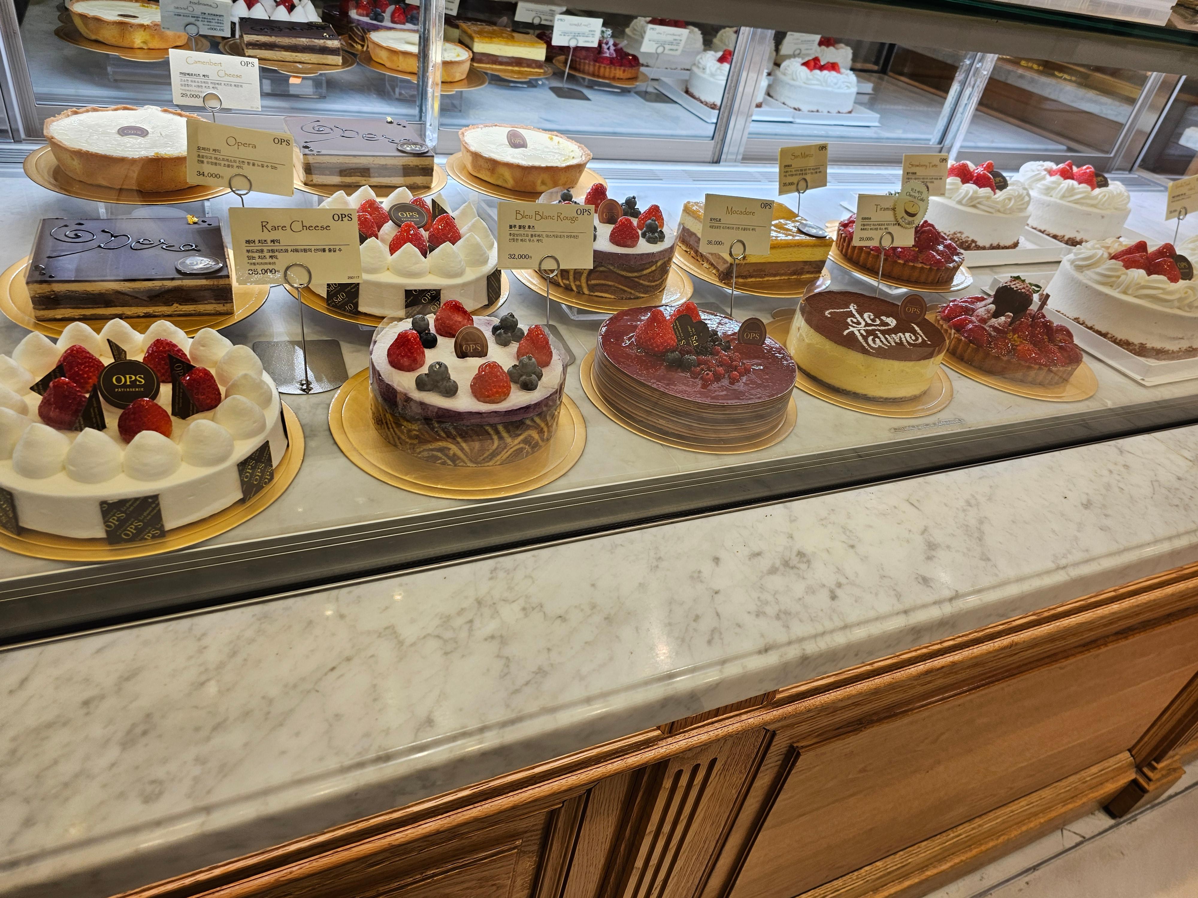 주차는 롯데몰 내 주차장을 이용하면 편리하고, OPS는 백화점 내부에서 바로 연결되는 구조라 비 오는 날에도 걱정 없었어요. 매장 내부는 고급스러우면서도 따뜻한 분위기라 혼자 와도, 데이트로 와도 참 좋을 공간이에요. 디저트 종류가 워낙 많고 빠르게 품절되는 경우도 있어서 인기 메뉴는 아침 일찍 가야 찜할 수 있답니다.