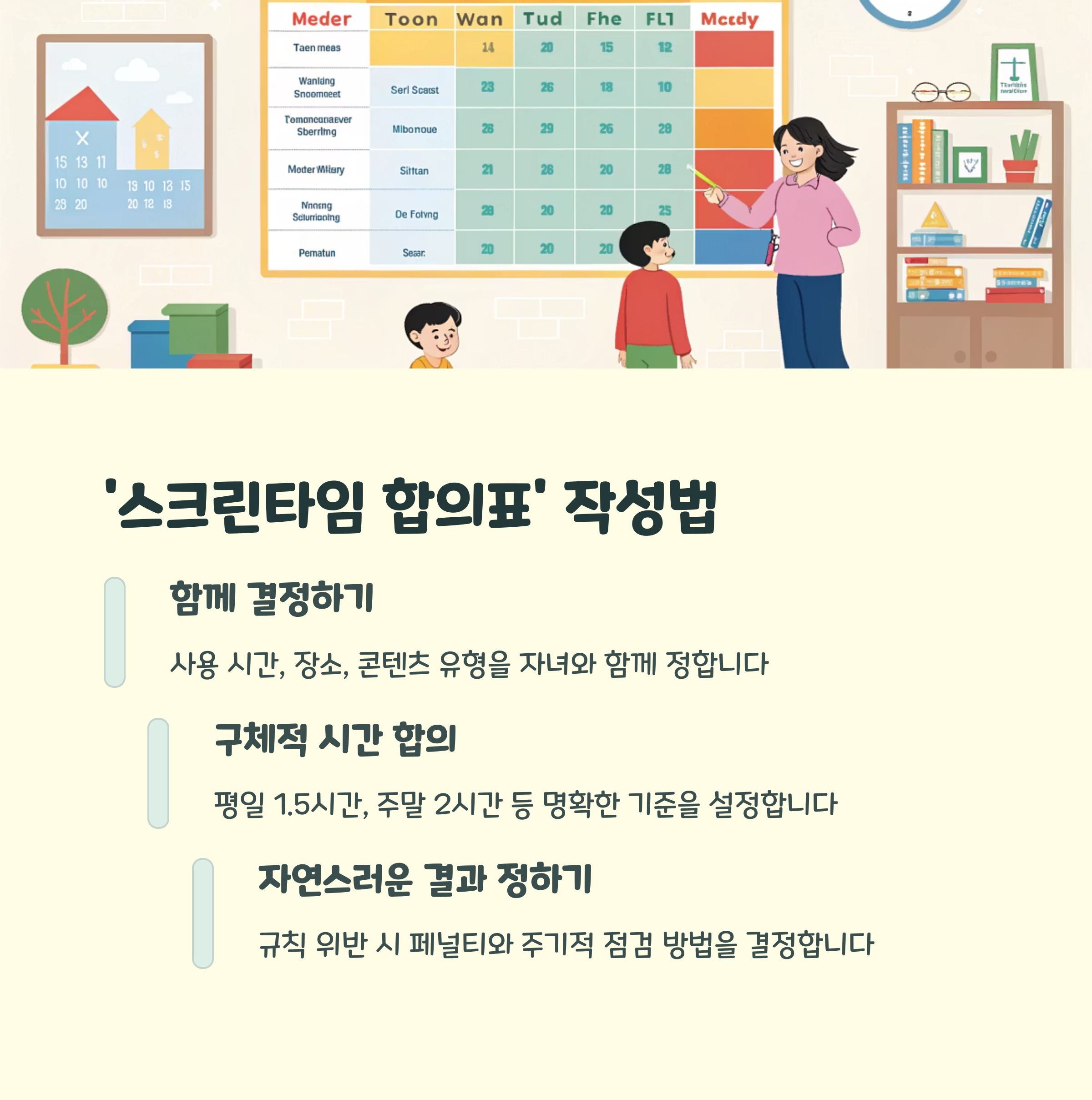 오늘부터 자녀와 함께 스크린타임 합의표 작성, 도전해보세요! 어려운 일이 아닙니다. 함께 해결할 수 있어요 💪