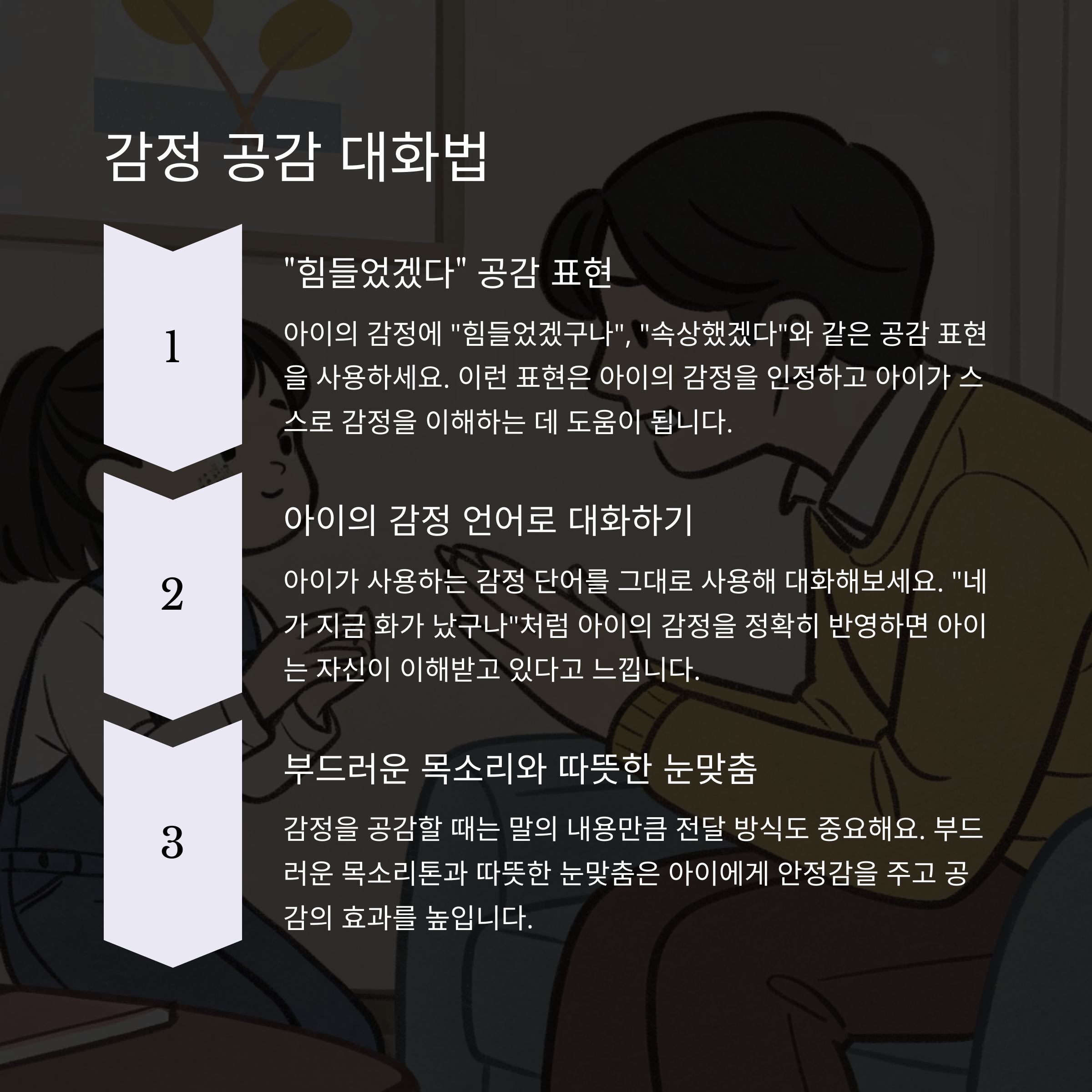- 공감 후엔 아이 스스로 차분해지는 경우가 많아요