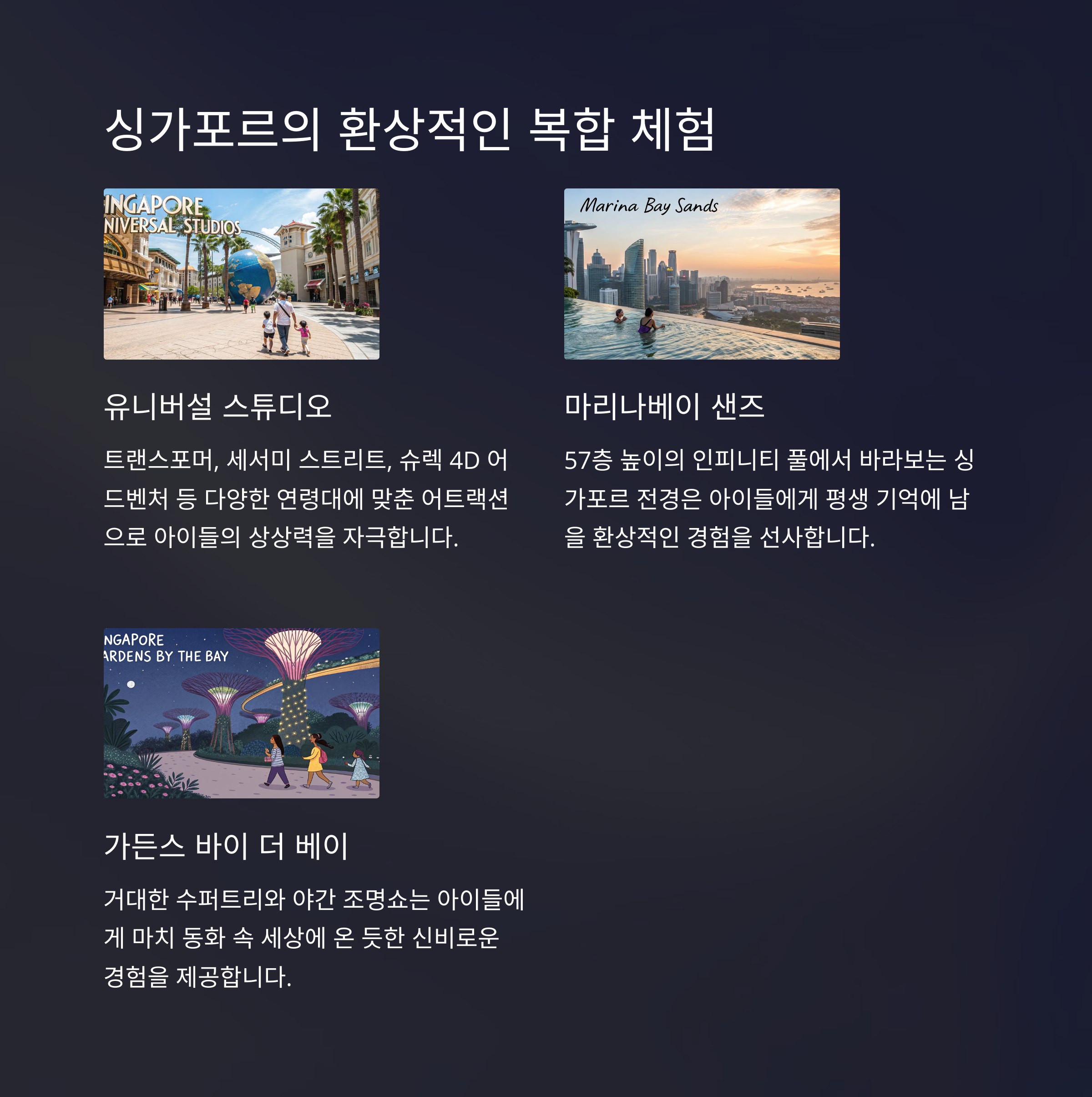 싱가포르 여행은 야경과 편리한 접근성과 함께 풍부한 여유를 제공합니다.