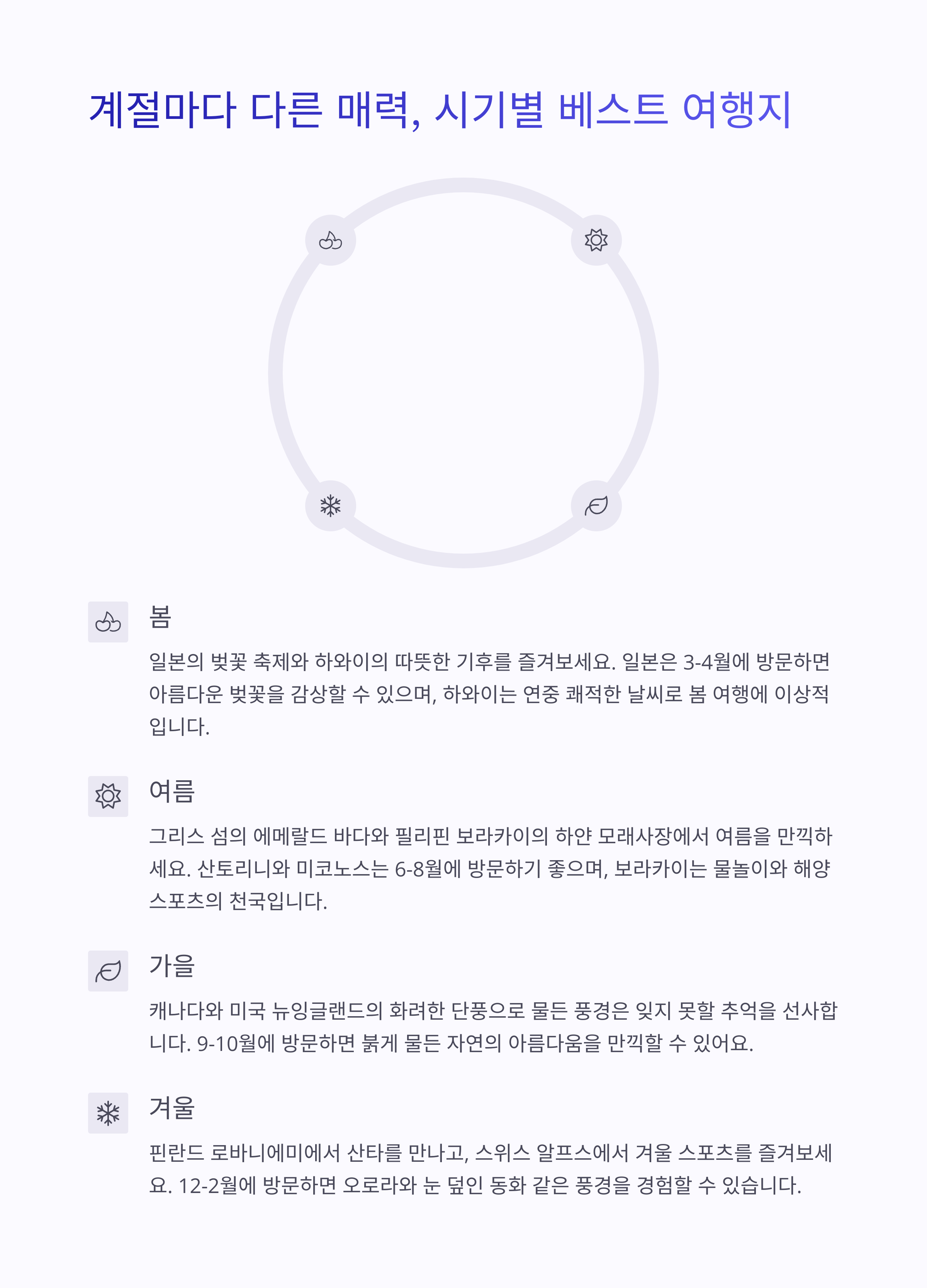 연령별 추천 여행지와 계절별 특징