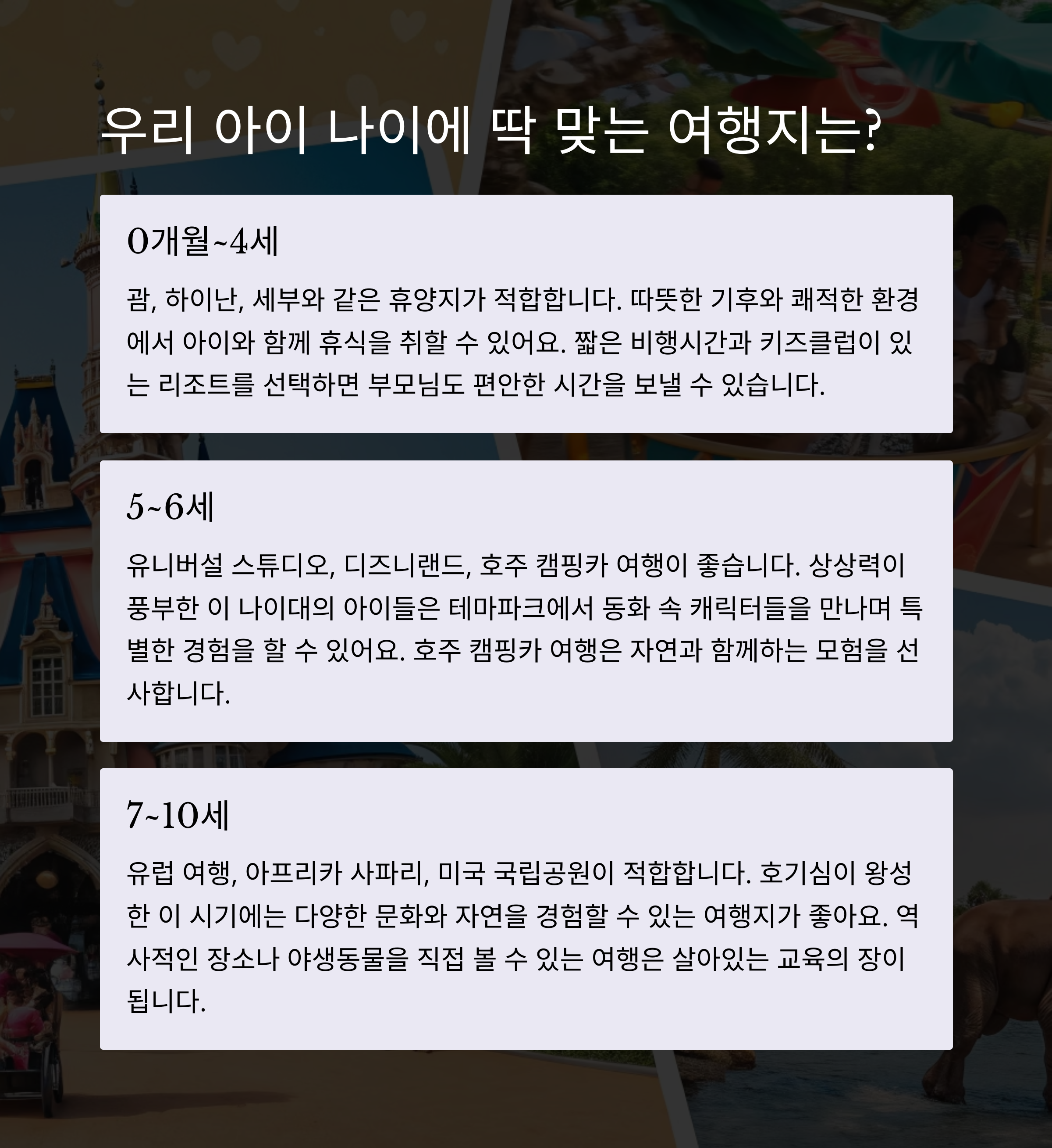 ✈️ 여행 준비는 연령 맞춤이 필수! 아이의 성장 단계에 따라 여행지를 선택하세요.