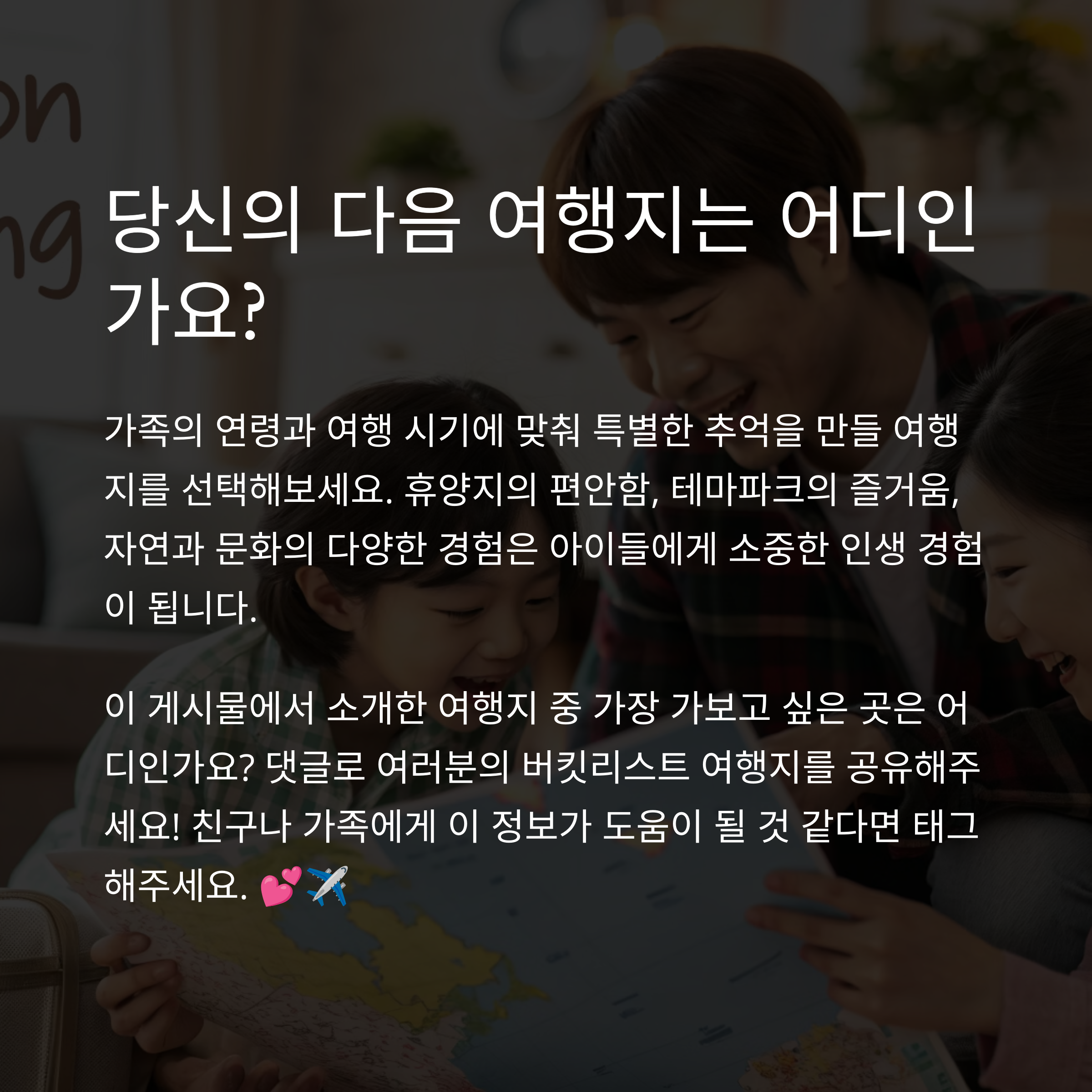 가족 모두가 즐길 수 있는 여행지와 꿀팁까지 전달드리겠습니다!