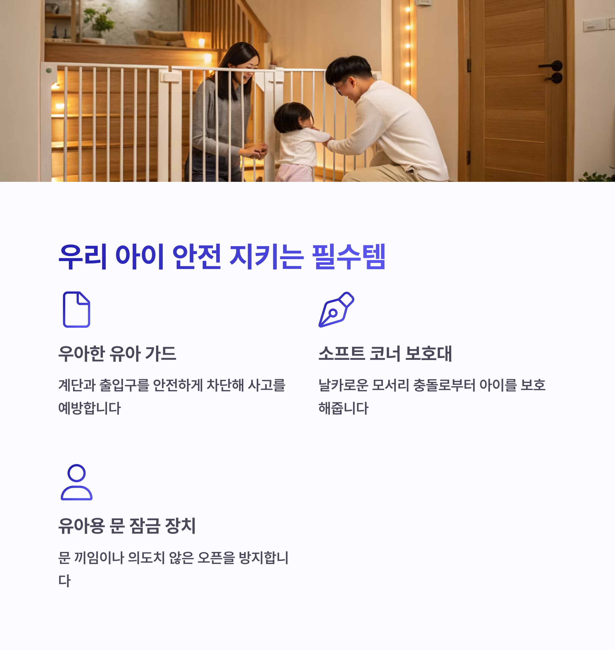 | 유아용 문 잠금 장치 | 간단한 설치, 강력한 잠금 | 예상치 못한 사고 방지 |