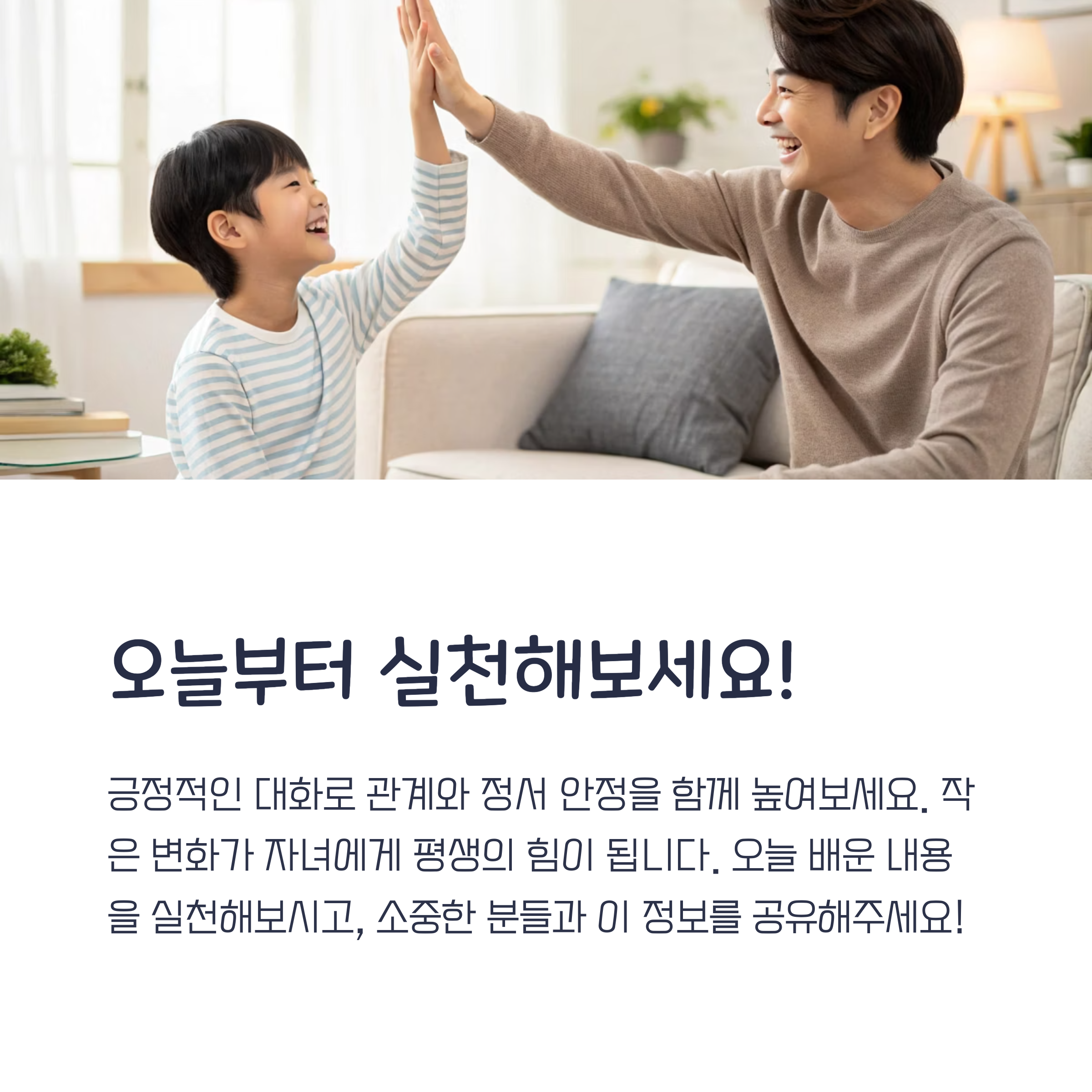 자녀와의 관계는 오늘의 작은 노력으로부터 시작됩니다. 지금 이 순간이 그 변화를 시작할 시간일지도 모릅니다. 아이에게 "넌 정말 소중한 존재야"라고 말해보세요!