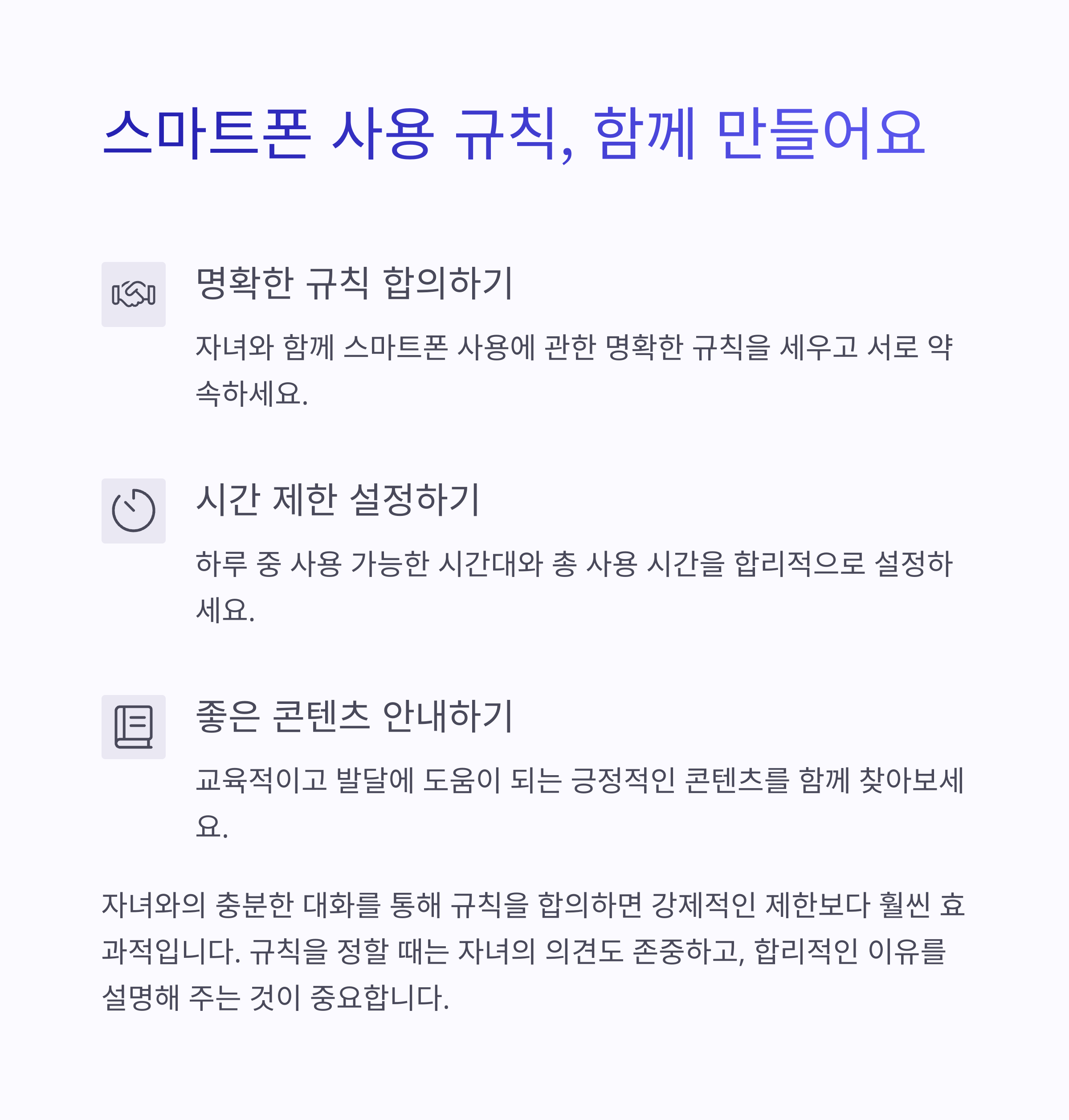 - 자녀와 스마트폰 사용 규칙 합의하기