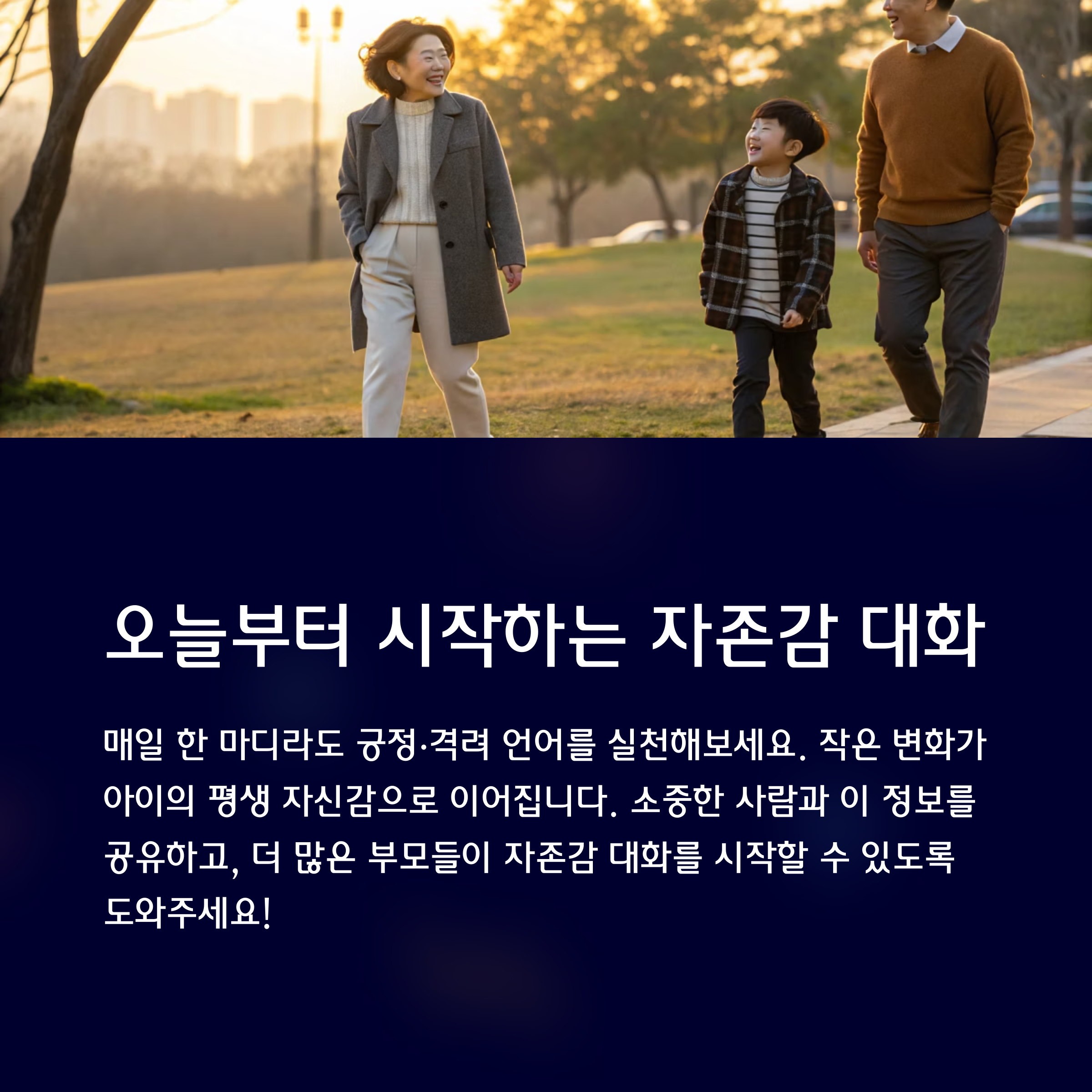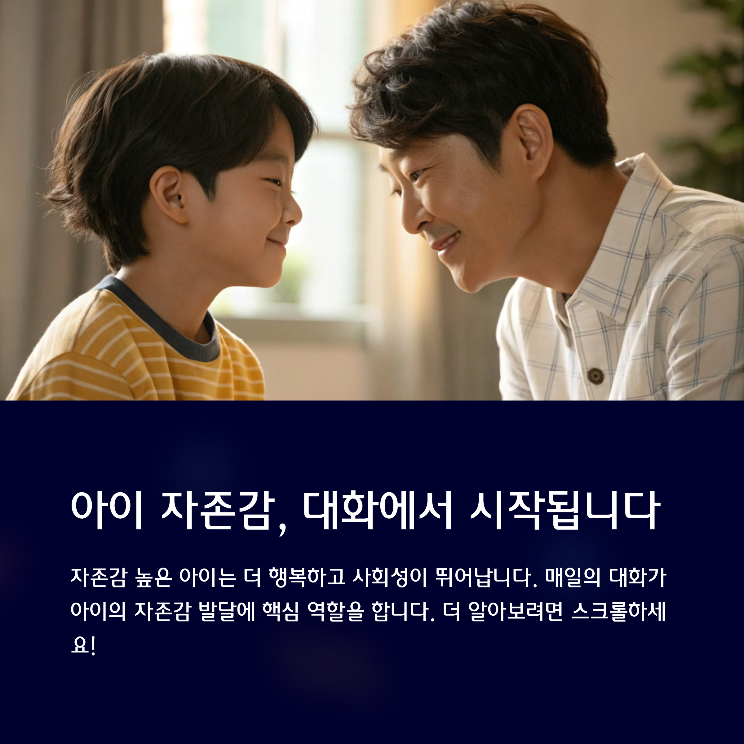 아이와의 대화는 단순한 대화 그 이상입니다. 자녀의 자존감을 키워 건강하고 행복한 삶을 살도록 돕는 강력한 도구입니다. 오늘부터 작은 것 하나라도 실천해 보세요. 아이의 변화에서 시작된 행복한 가정을 경험하게 될 것입니다!
