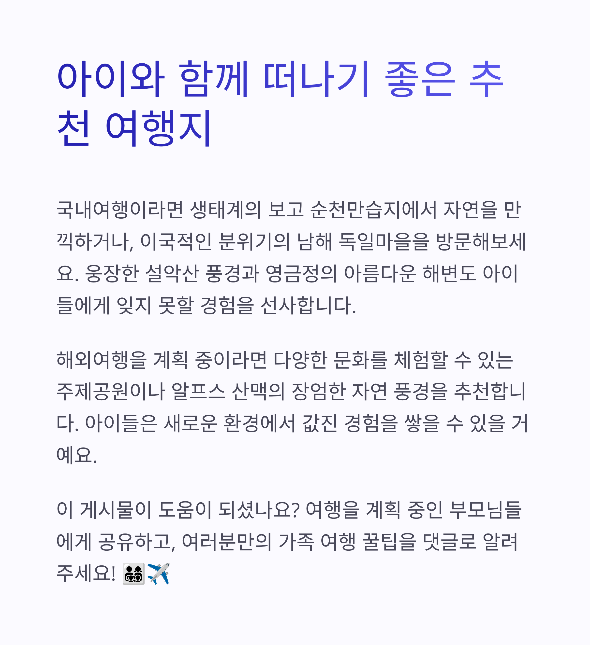 | 아이랑 국내 여행? 막막한 당신을 위한 초보자용 가이드 (3) | 2025.04.10 |