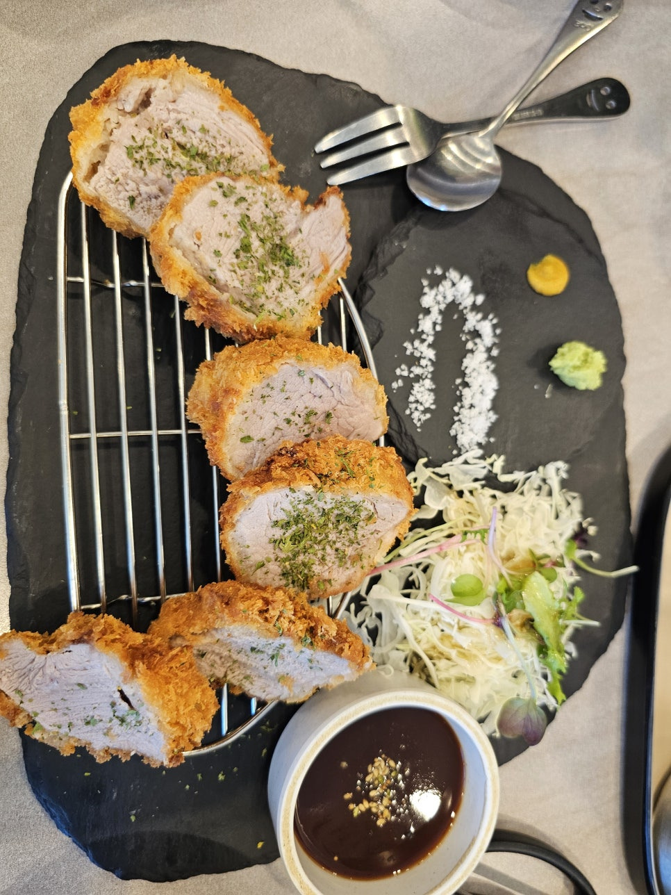 🐷 겉은 바삭하고 속은 부드러운 돈가츠! 정통 일본식 돈가츠 느낌이 강했고, 고기의 두께도 두툼해서 씹는 식감이 살아 있었어요. 특히, 소금과 와사비를 곁들여 먹으면 풍미가 더해져 더욱 맛있었어요.