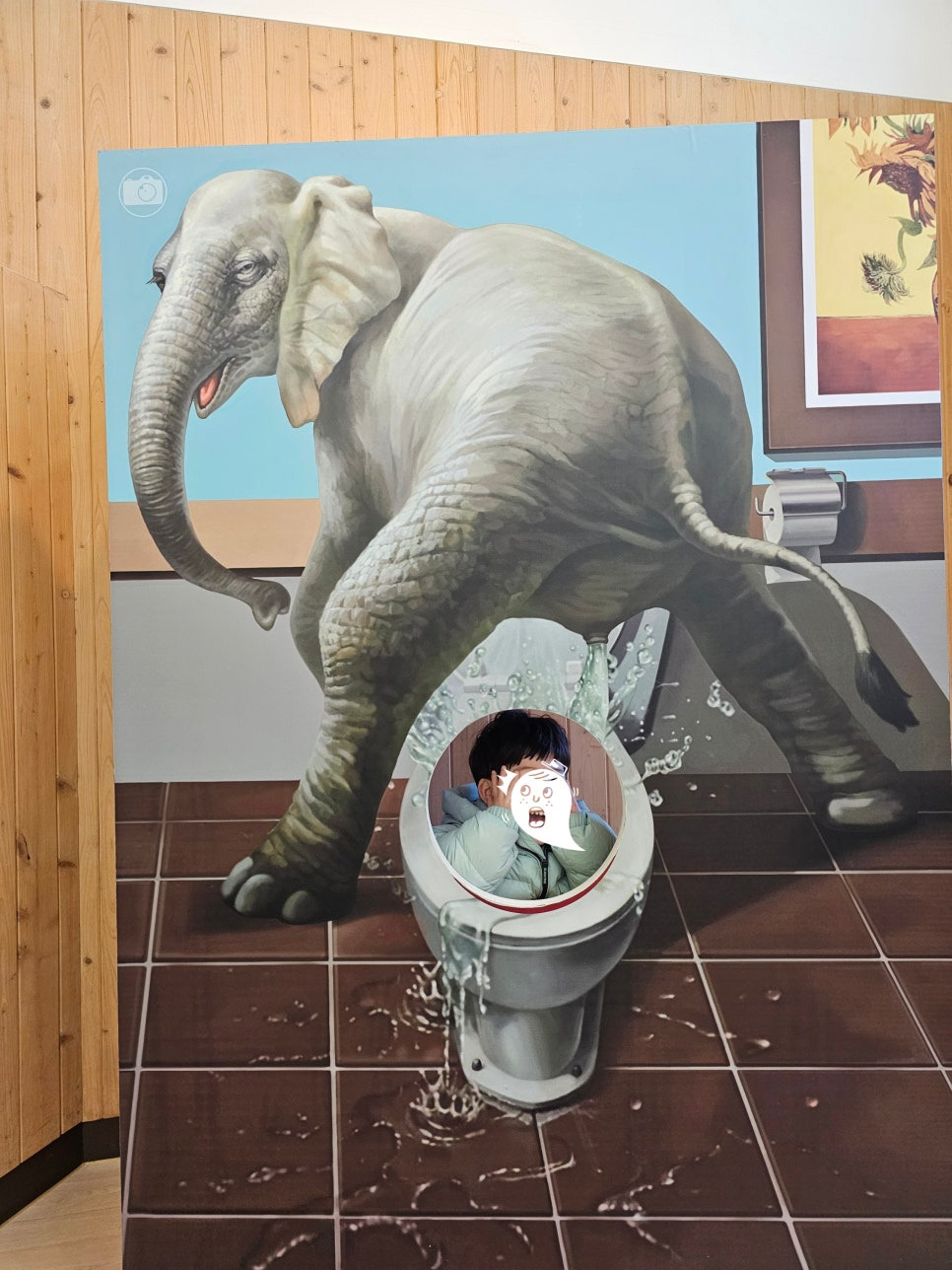 박물관 곳곳에 유쾌한 트릭아트가 준비되어 있어요. 특히 코끼리가 물을 뿜어 변기 안으로 떨어지는 연출은 아이들에게 인기 만점! 직접 들어가 사진을 찍을 수 있어서 더욱 재미있었습니다.