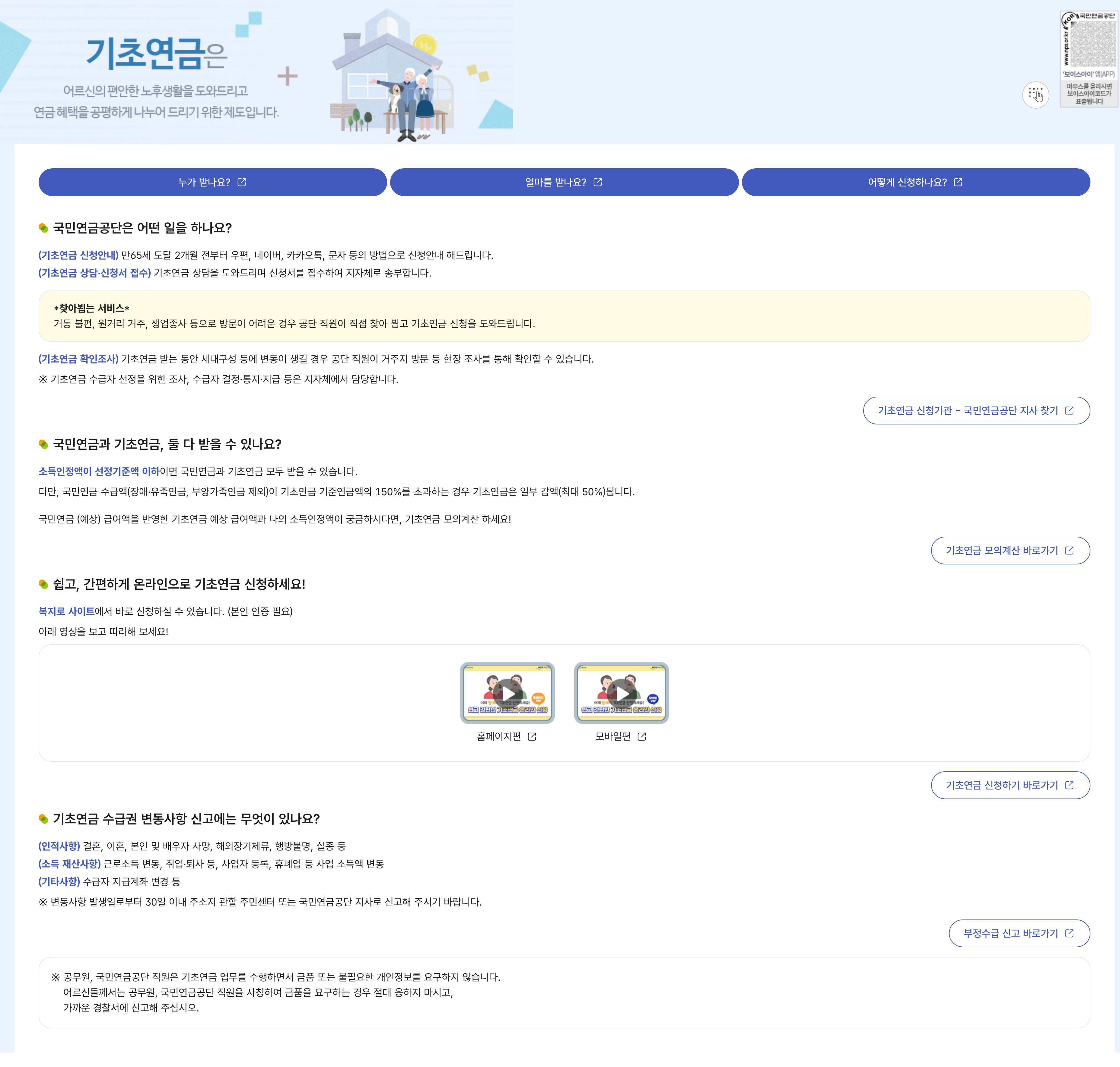 | 복지로 온라인 신청 ↗ | 지사 찾기/방문 예약 ↗ |
