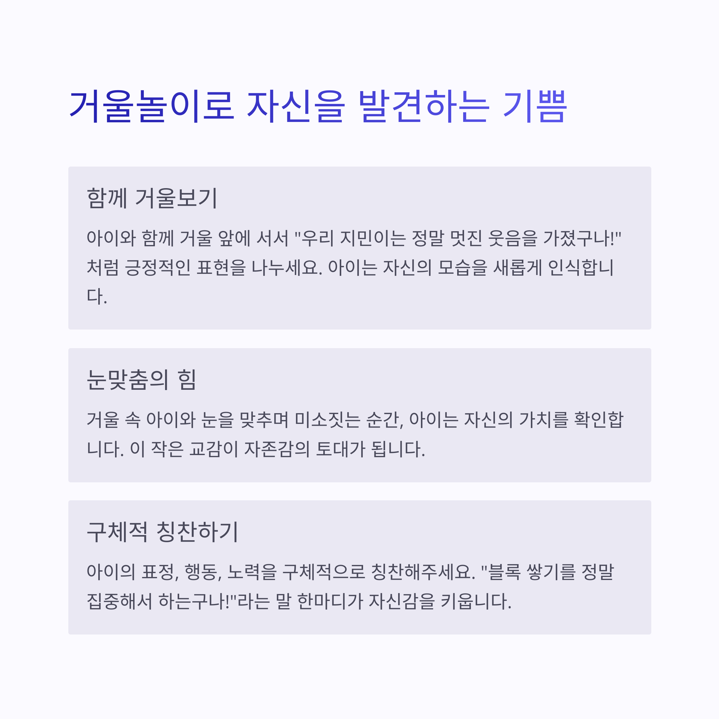 말투와 표정, 몸짓 하나하나가 아이의 ‘자기 존재감’을 키워주는 메시지입니다.