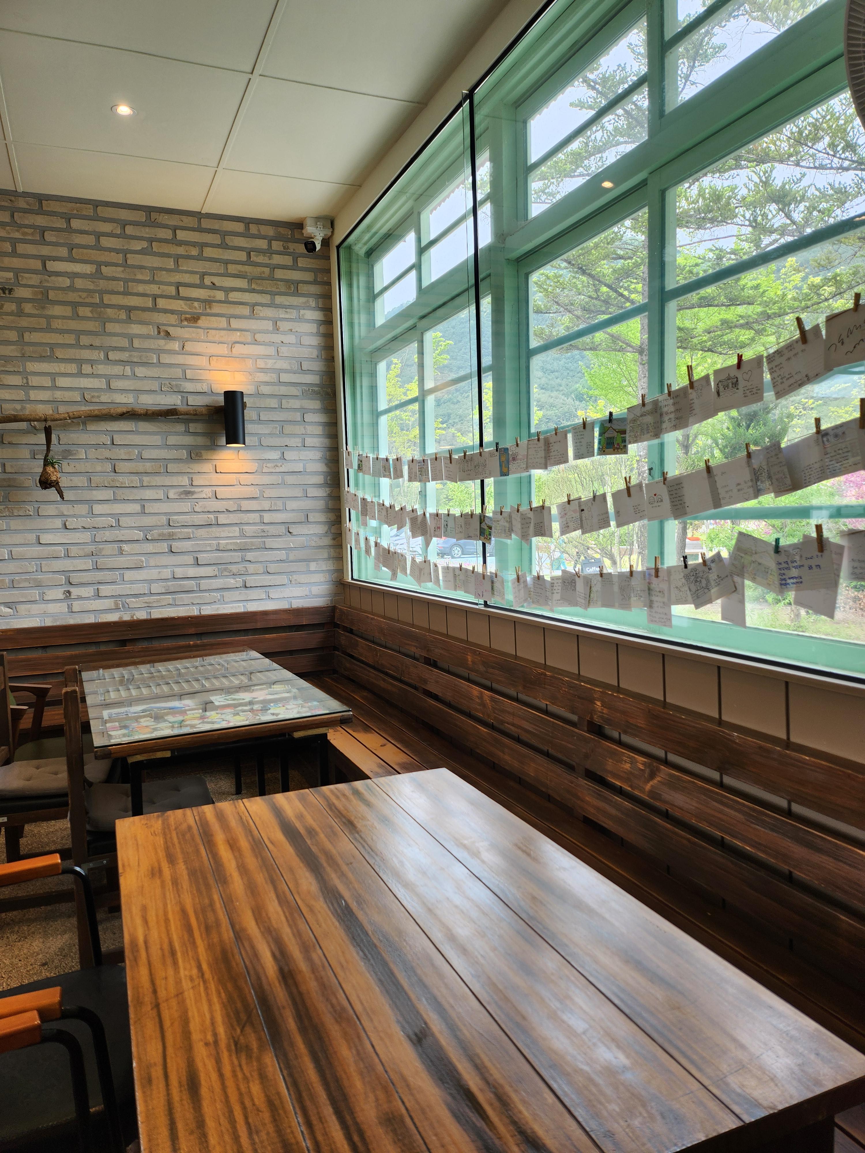 구 나전역을 개조해 만든 이 카페는, 겉에서 보면 마치 기차를 기다리는 대합실 같고, 안으로 들어서면 감성이 가득한 북유럽풍 인테리어가 펼쳐집니다. 외관은 옛 모습 그대로 보존되어 있어 정선의 시간 속에 머무는 듯한 느낌을 줘요. 내부는 조용하고 깔끔하며, 천장이 높고 통창이 많아 자연광도 예쁘게 들어왔습니다.